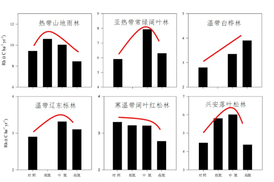 图15.氮添加对典型森林生态系统异养呼吸的影响