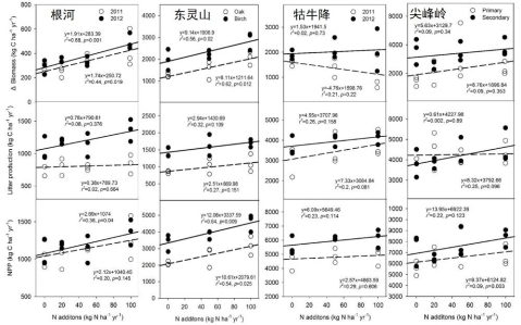 图13.不同气候带典型森林生态系统生产力对氮添加的响应