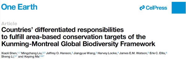 2023年5月5日,北京大学生命科学学院、北京大学生态研究中心李晟课题组与中国科学院植物研究所马克平课题组合作在One Earth在线发表了题为“Countries' differentiated responsibilities to fulfill area-based conservation targets of the Kunming-Montreal Global Biodiversity Framework”的研究论文。本研究发现,为了提高保护成效,保护地网络的扩展必须集中在全球生物多样性和碳最丰富的地区;然而,一些发展中国家,特别是热带和岛屿国家,在此过程中将面临着极大的保护挑战。因此,需要在国际间建立强有力的筹资机制来支持各国的合作和协调行动,以便在全球范围内公平地分担保护成本,提高保护成效。